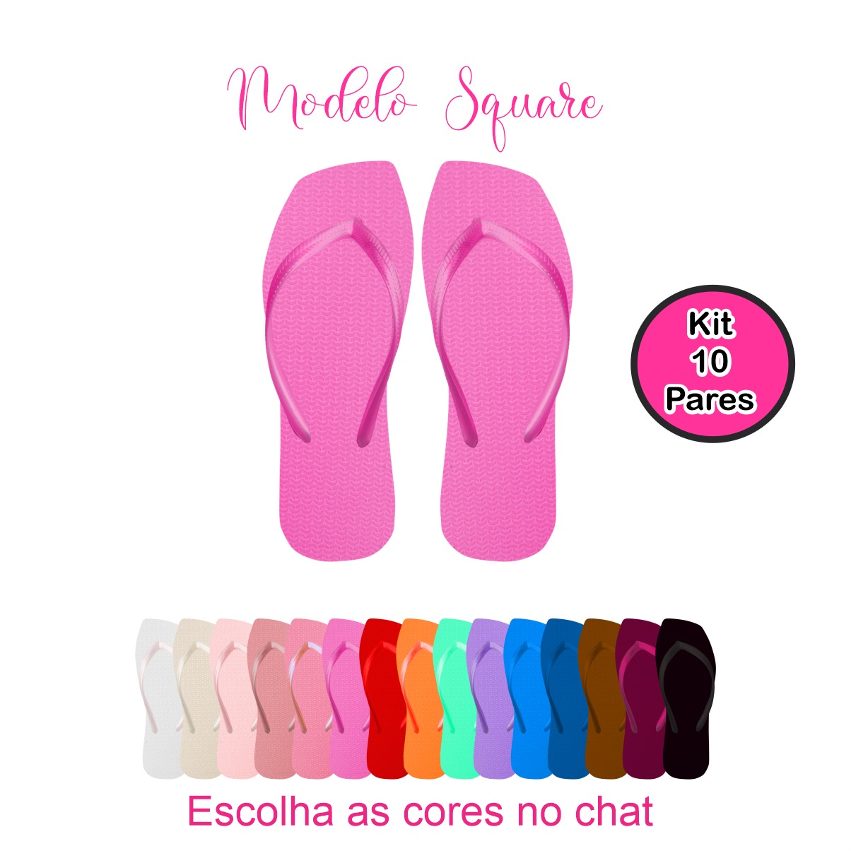 Lote com 10 Pares de Chinelos Modelo Square ( Quadrado)